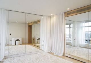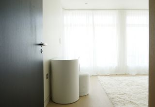 En colaboración con Bon Design, Silent Gliss suministró rieles y cortinas para hacer realidad esta visión. Las delicadas y discretas cortinas de confección suiza con los tejidos translúcidos Polyflax y Someo, colgadas en rieles SG 6465 y mediante las exclusivas correderas silenciosas patentadas de dos componentes, aportaron una sutil elegancia a un interior sobrio y de ensueño.