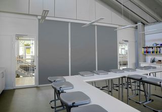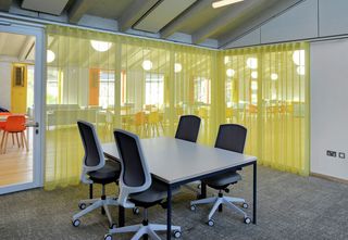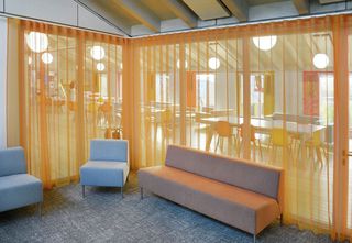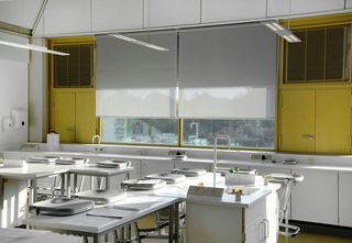 Las cortinas Silent Gliss se colocaron en capas en los laboratorios utilizando sistemas enrollables SG 4910 con tejido Aluscreen Futura para brindar protección solar durante el día y el sistema dim-out SG 4740 para oscurecer la habitación. Para mezclarse armoniosamente con el entorno, los perfiles se combinaron con el color de los marcos de las ventanas. Las áreas de socialización y de estudio están dotadas de rieles manuales SG 6840 con Wave para un ambiente acogedor. El resultado final es una instalación educativa galardonada y estéticamente deslumbrante que ha logrado una calificación BREEAM excelente.