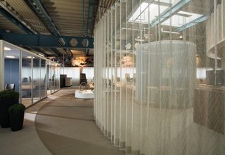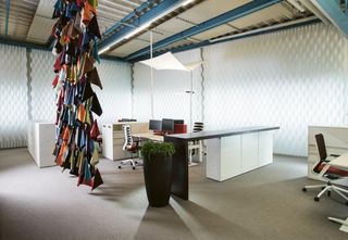 Las Vertical Waves proporcionan encanto a la habitación con los efectos especiales de luces y sombras creados por sus ondas giratorias. Las lamas permiten controlar la iluminación según las tareas a realizar, creando un ambiente de trabajo agradable para el personal.